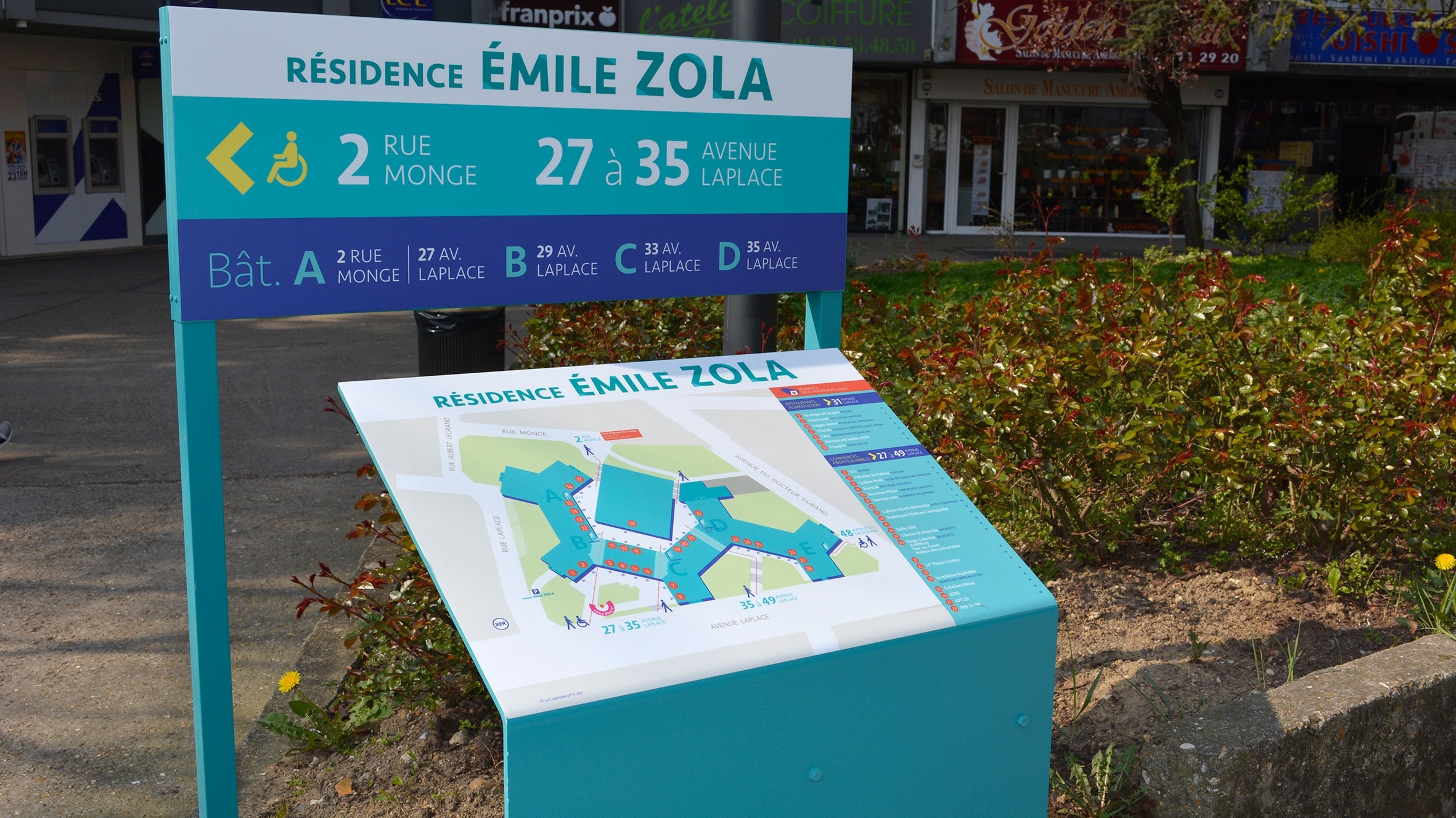 Identité visuelle, panneaux d’orientation et directionnels d’une résidence....