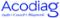 À notre connaissance, la société ACODIAG est peu représentée sur Internet : elle n'utilise pas les principaux réseaux sociaux mais a son propre site web. Le n° SIREN 453 982 605 correspond au siège d'ACODIAG qui possède un établissement secondaire. Cette société a fait enregistrer la marque ACODIAG AUDIT. CONSEIL. DIAGNOSTIC le 20 septembre 2004 dans les classes 00, 36 et 37 (marque expirée) sur la base des registres de l'INPI.