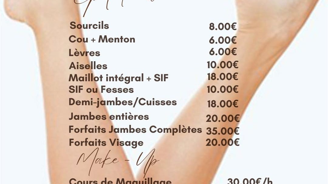 Le salon de beauté L'instant Nails by Clara propose une gamme complète de services d'épilation, comprenant l'épilation du cou, du menton, des lèvres, des aisselles, du maillot intégral avec SIF, des fesses, des demi-jambes, des cuisses et des jambes entières. Le salon propose également des forfaits spéciaux pour répondre aux besoins individuels des...